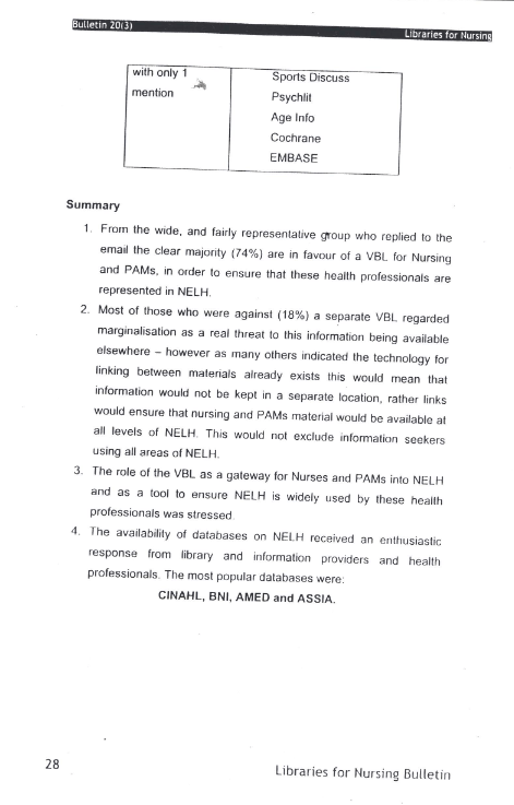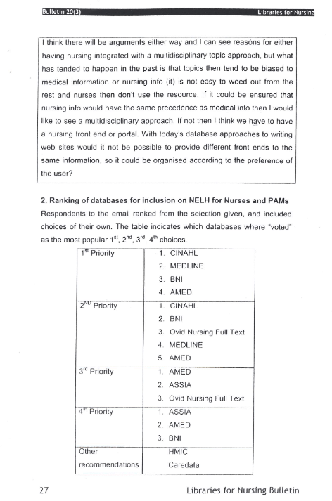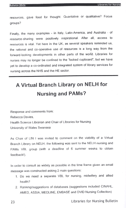 Libraries for Nursing Bulletin Vol. 20 (3)
