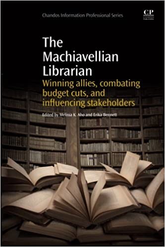 AHO, Melissa and BENNETT, Erika, The Machiavellian Librarian: Winning Allies, Combating Budget Cuts and Influencing Stakeholders (Oxford: Chandos Publishing, 2013) 316 pages. ISBN – 978-1843347552. £44.97
