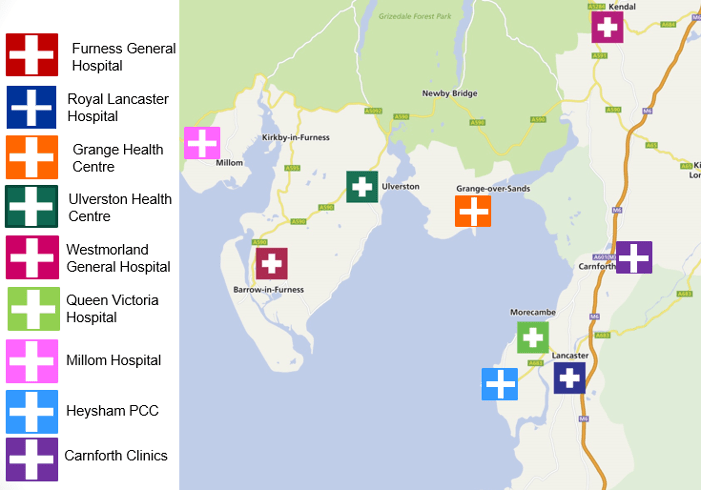 The Library and Knowledge Service (LKS) at University Hospitals of Morecambe Bay NHS Foundation Trust (UHMBT) covers a large geographical area. Beyond the three main hospital sites, Royal Lancaster Infirmary (RLI), Furness General Hospital (FGH) and Westmorland General Hospital (WGH), there are several sites where the community teams are based. It is not possible for all staff working within the community to visit the physical library spaces at RLI and FGH. However, these staff have access to all the online LKS, and it is possible to send physical books out to these staff using the Trust internal mail system.