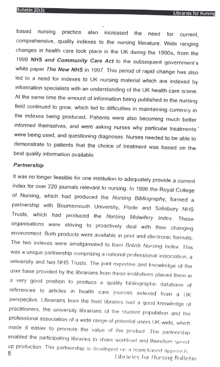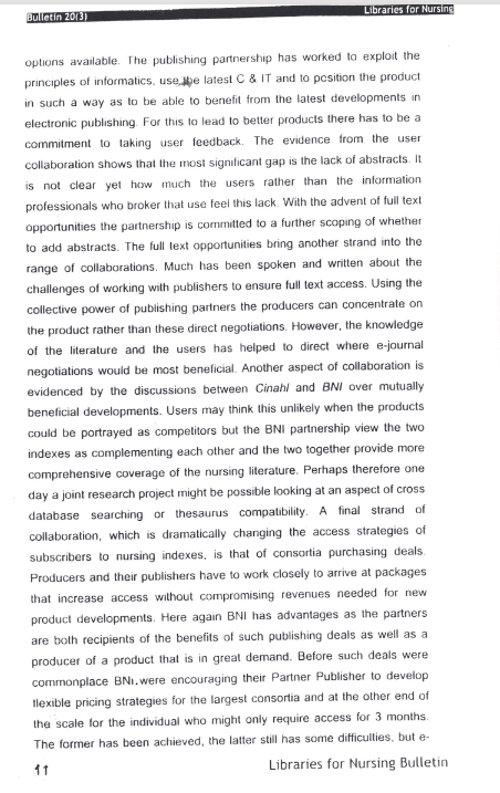 Libraries for Nursing Bulletin Vol. 20 (3)