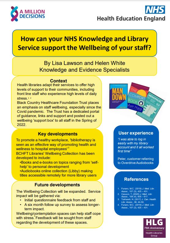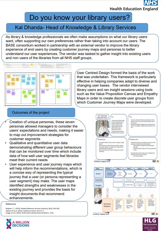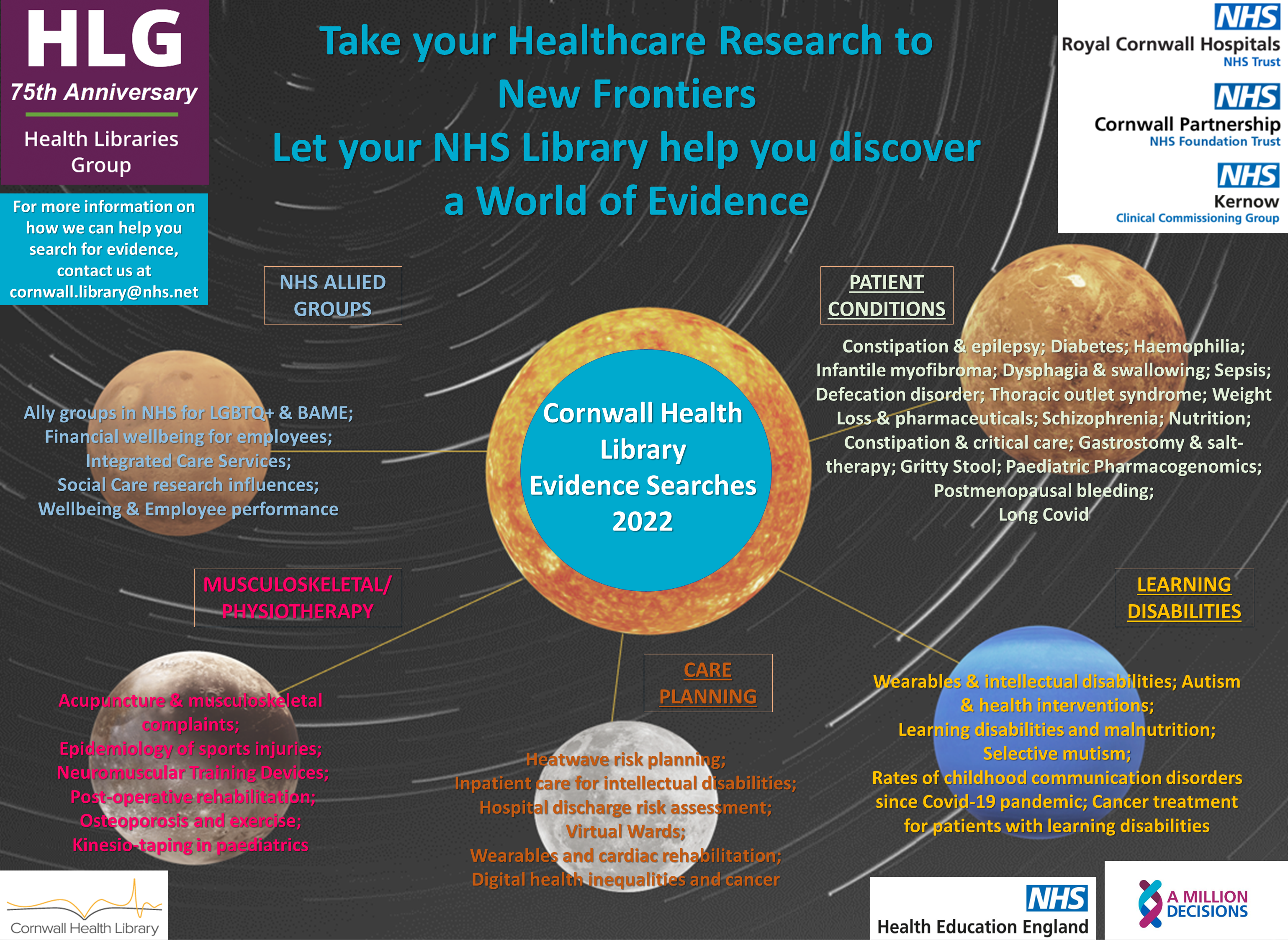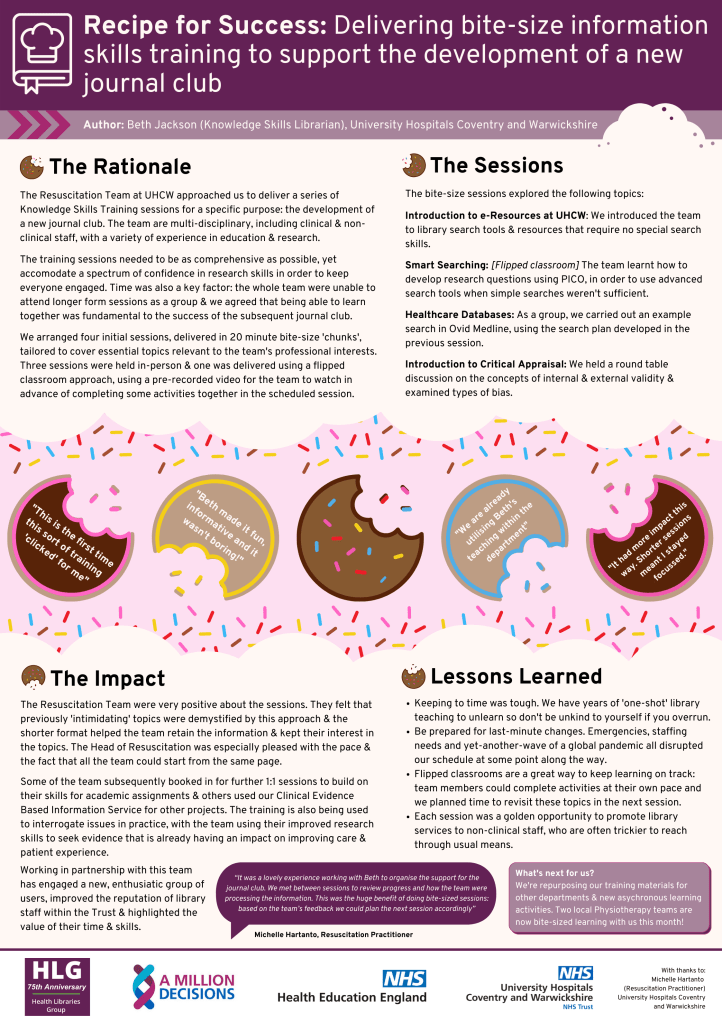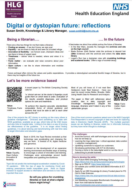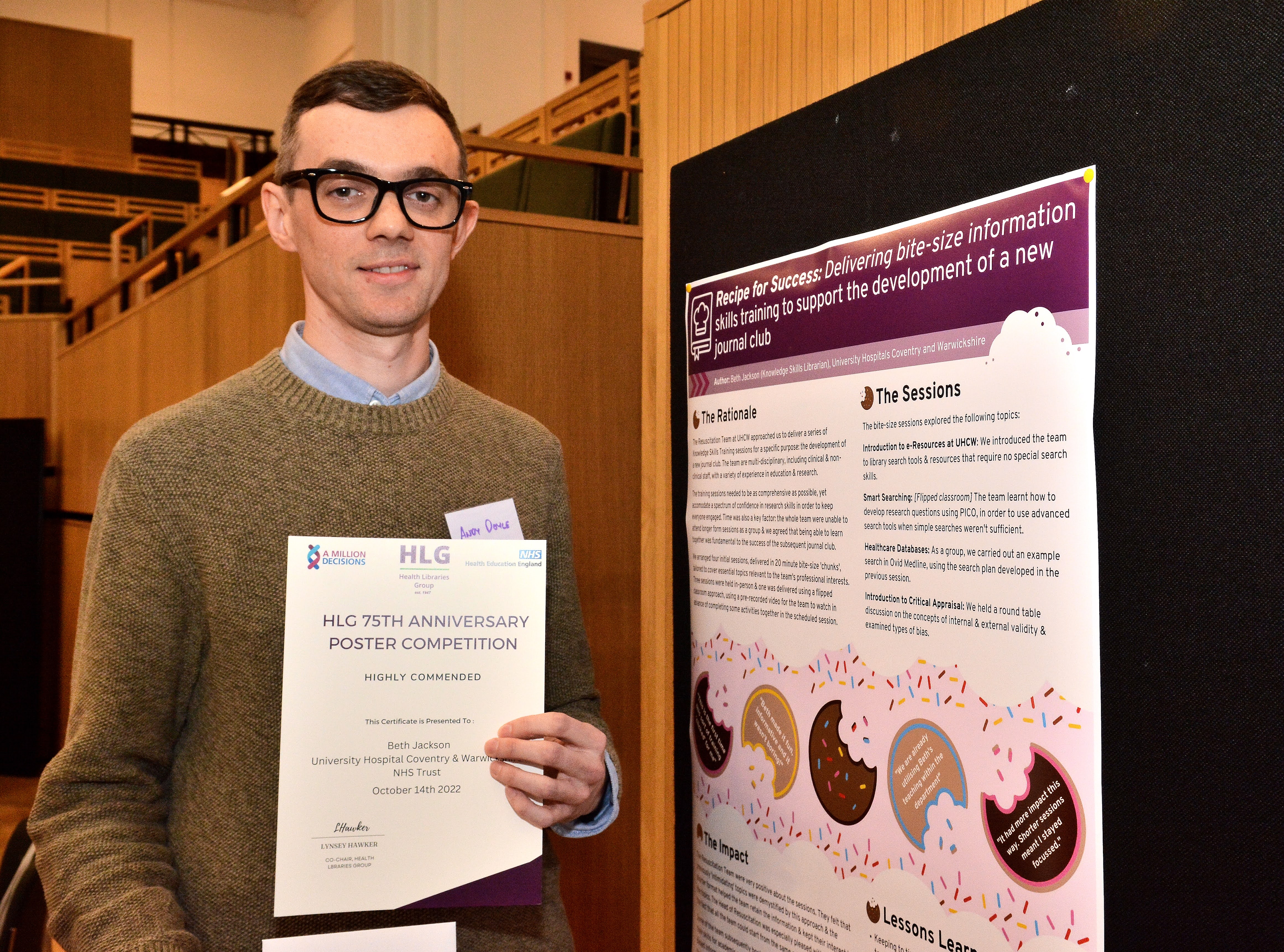 To celebrate HLG’s 75th anniversary, we teamed up with our colleagues at Health Education England to invite you to produce a poster. We received many brilliant entries that made it hard to judge those that would be successful in the competition – you can see a selection of them on the carousel below, while all of them are listed further down the page. In addition, you can see the attached lightning talks from each of the winners at the bottom of the page.