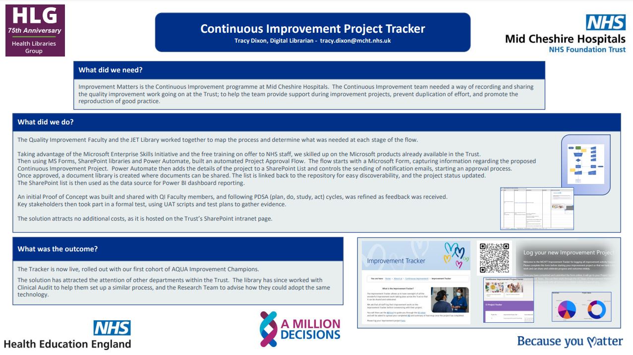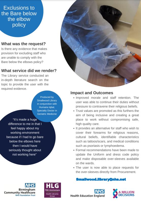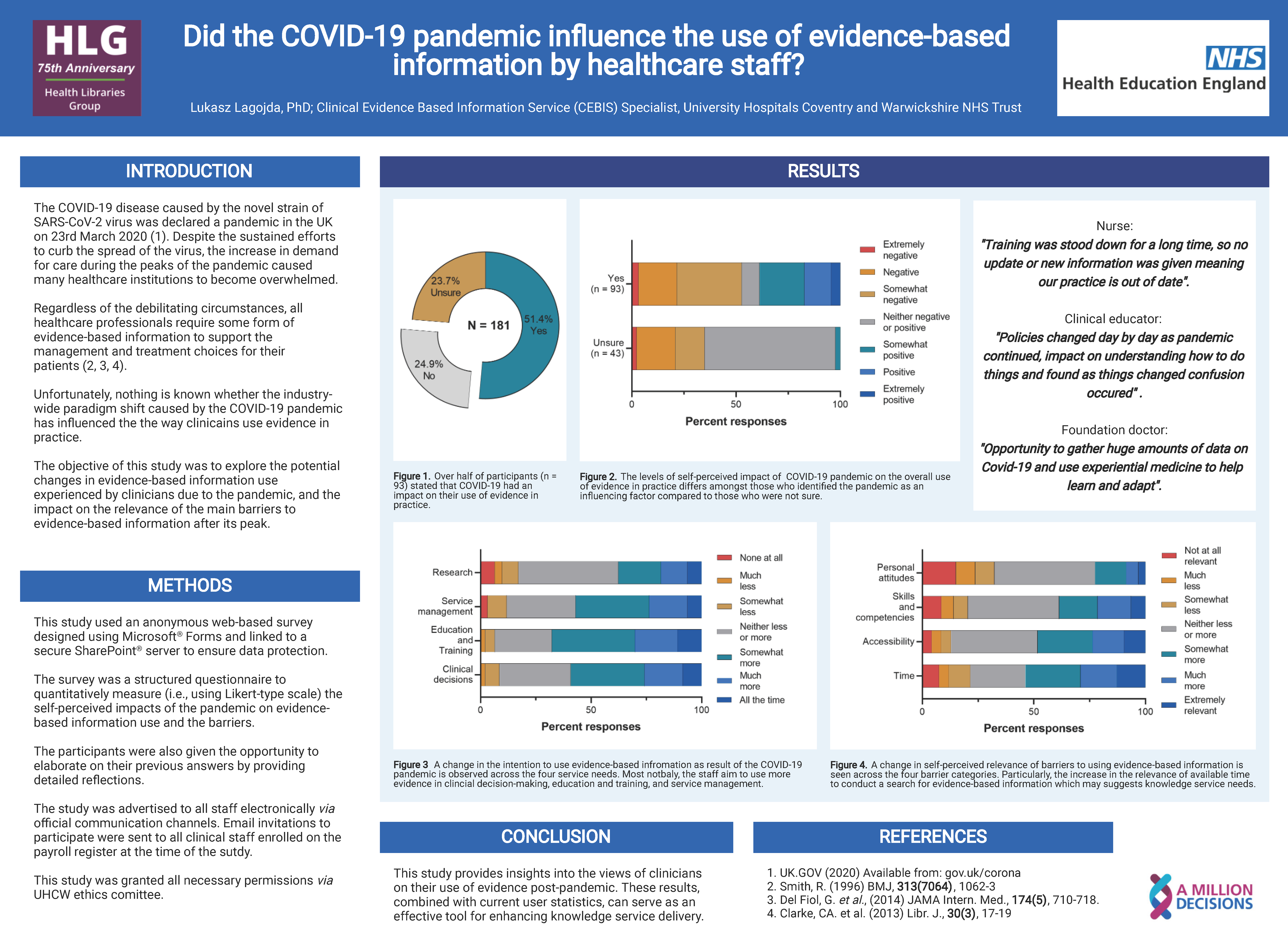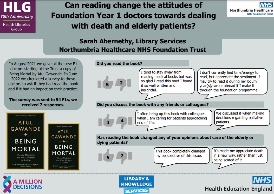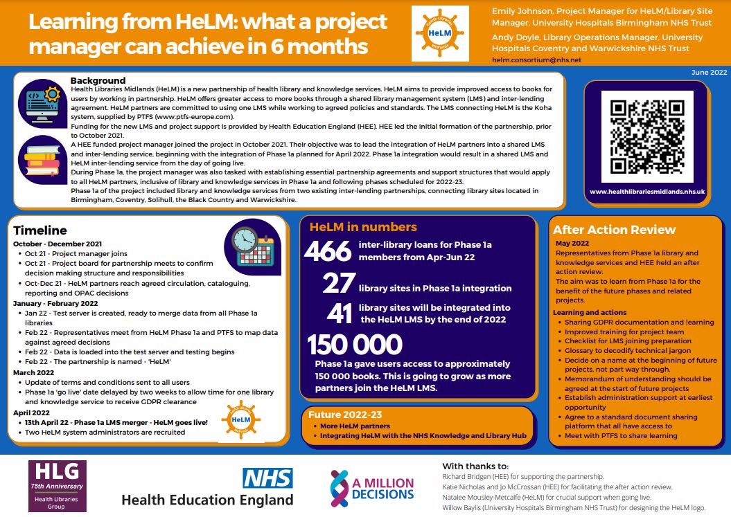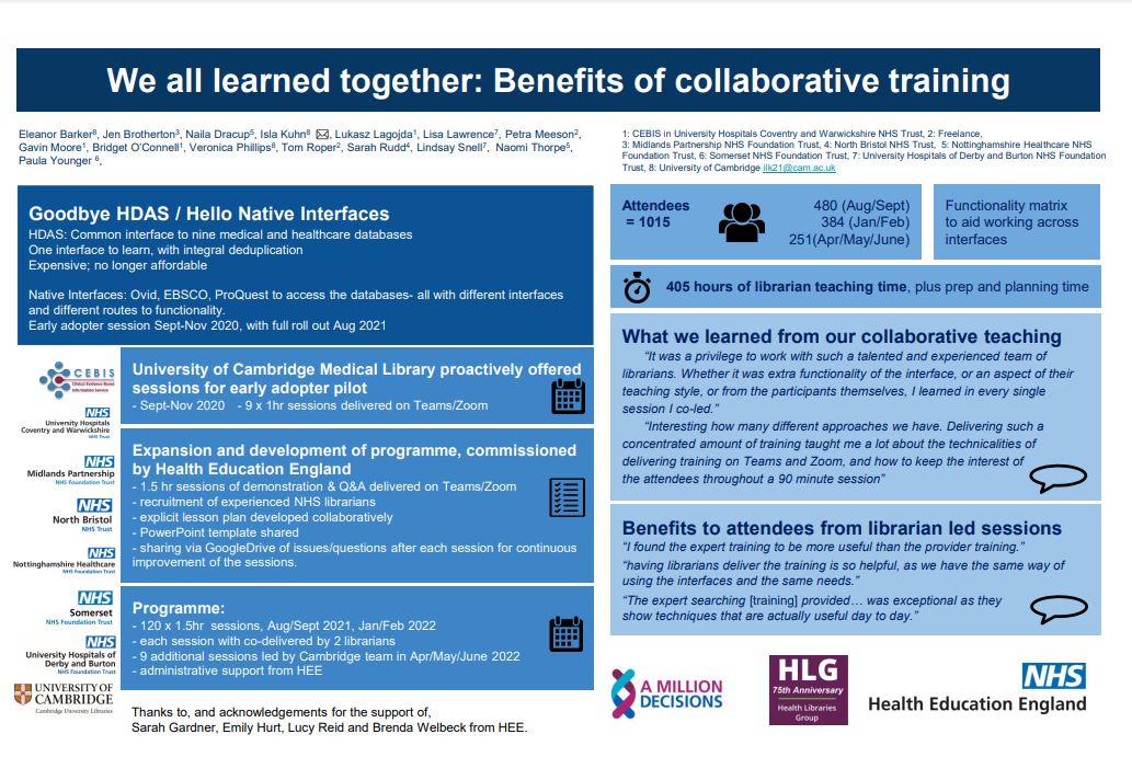 To celebrate HLG’s 75th anniversary, we teamed up with our colleagues at Health Education England to invite you to produce a poster. We received many brilliant entries that made it hard to judge those that would be successful in the competition – you can see a selection of them on the carousel below, while all of them are listed further down the page. In addition, you can see the attached lightning talks from each of the winners at the bottom of the page.