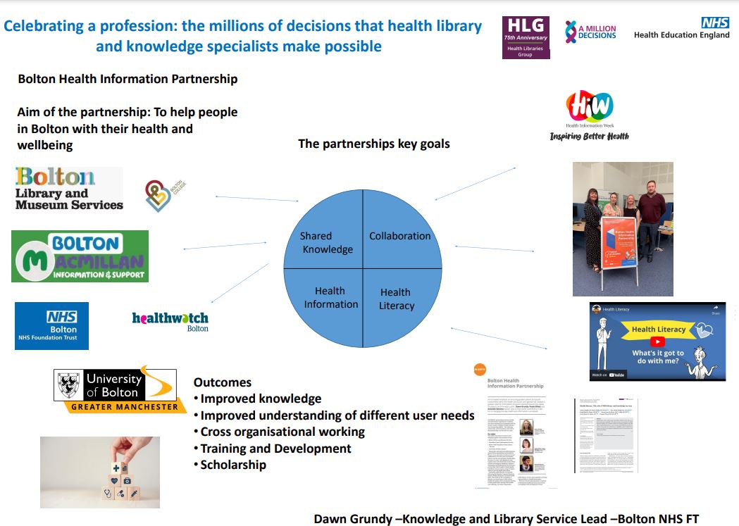 Partnership/collaboration – highlighting the collaborative nature of health libraries demonstrating the impact of working in partnership