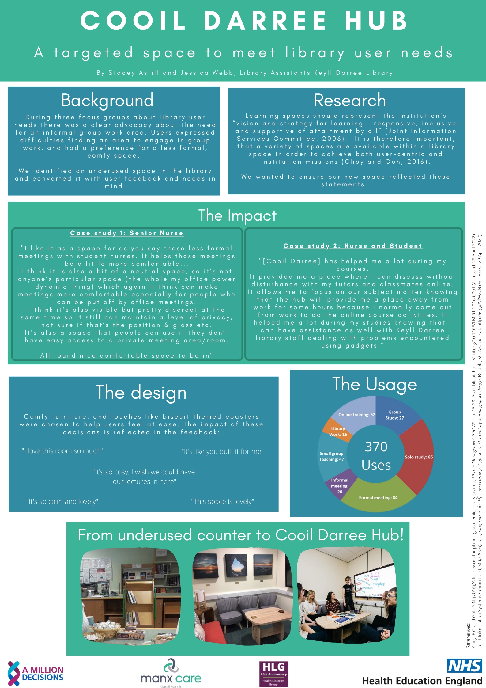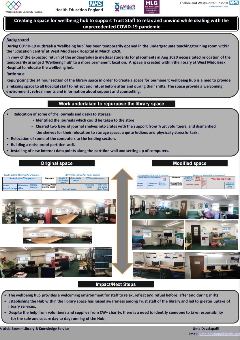 Library spaces – highlighting the impact that library space has on health and care, may include innovative uses of library spaces or concepts for the healthcare library space of the future