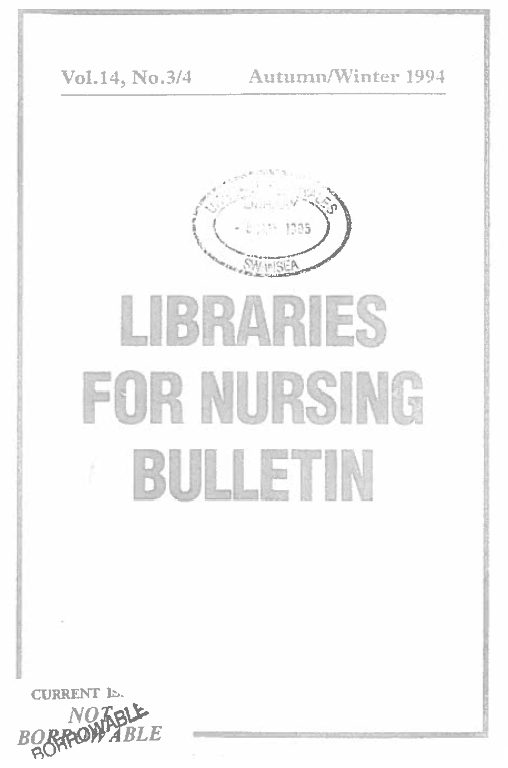 Libraries for Nursing Bulletin Vol 14(3/4) Committee1Editorial3Book Review: Provision of Library and Information Services to Nursing Professionals – NURLIS IIPaul Moorbath3Nursing on the NetDenis Anthony5Evidence Based Health Care: The Role of the LibrarianSally Hernando12Obituary: Keith DonaldsonDr R.A. Withers16Journals News, Letters, Notes and Adverts17Health Sciences Libraries in Scotland: Changes, Issues and Perceptions – Results of a Questionnaire SurveyJane Farmer21Help Wanted36 Share this: Share on X (Opens in new window) X Share on Facebook (Opens in new window) Facebook Like Loading...