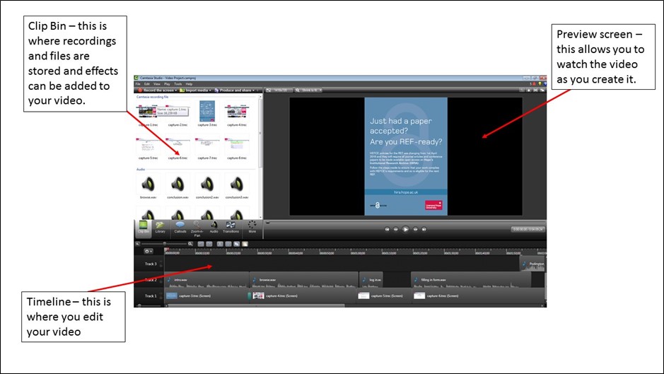 More and more libraries are producing video content to help their users understand their services and learn how to use their resources. Our University recently purchased some licenses for Camtasia, a screen recording and video editing software, and we were keen to make use of it to produce some of our own library videos. This article documents our experience of producing a first video using Camtasia and offers some hints and tips for those wanting to produce their own library videos.