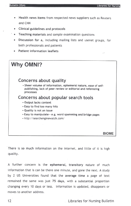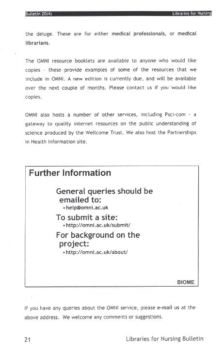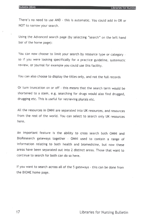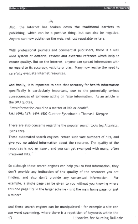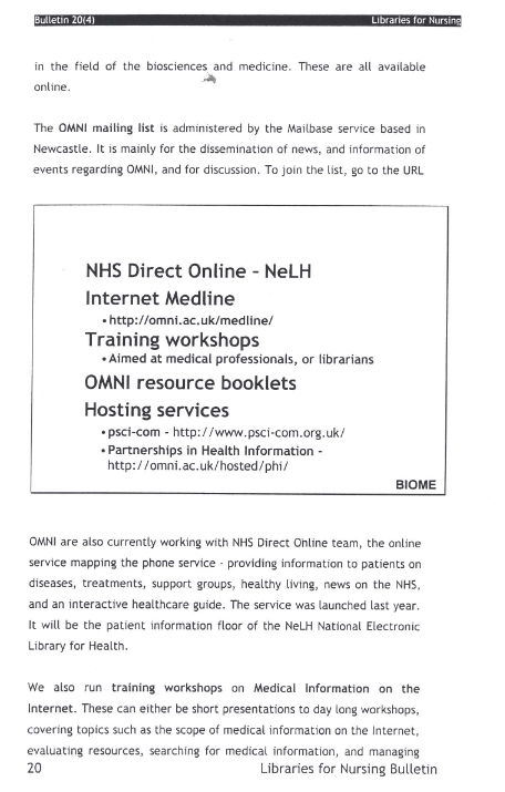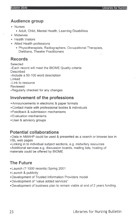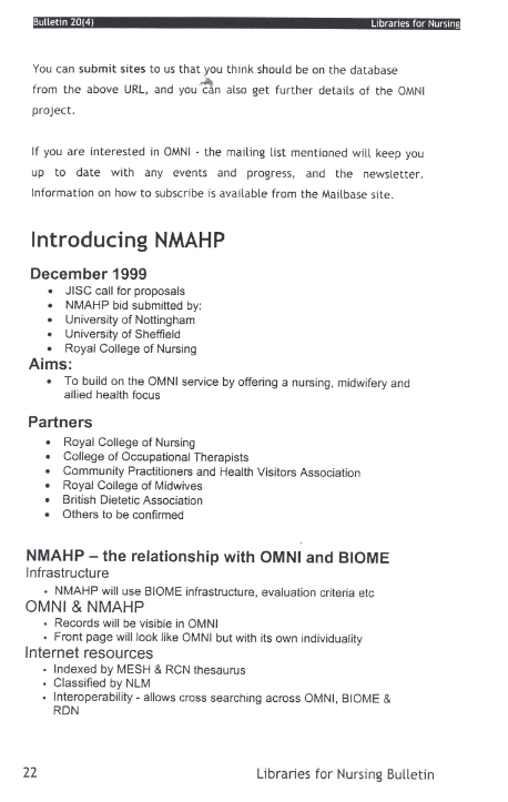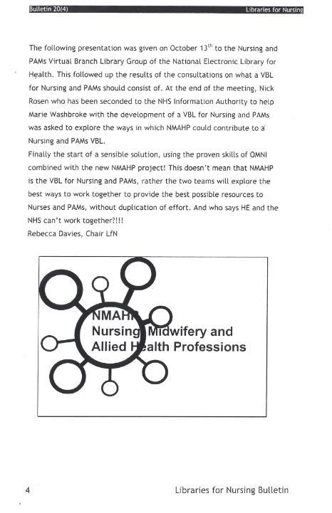 Libraries for Nursing Bulletin Vol. 20 (4)